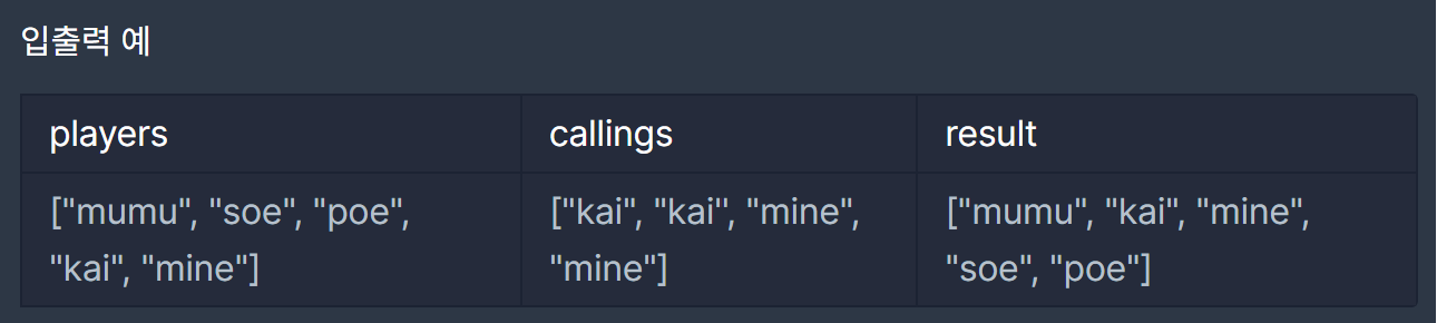 입력으로 들어오는 players에 대해 hashmap을 만들었습니다.