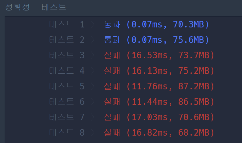 어쨌거나 dp를 이용해 피보나치로 변경했지만 실패한 코드는 아래와 같습니다.
