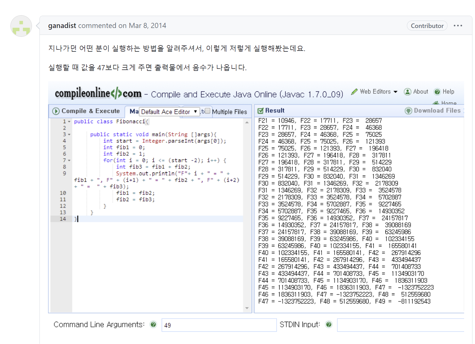 내용을 보면 n번째 결과가 너무 커져서 안된다는 내용입니다.