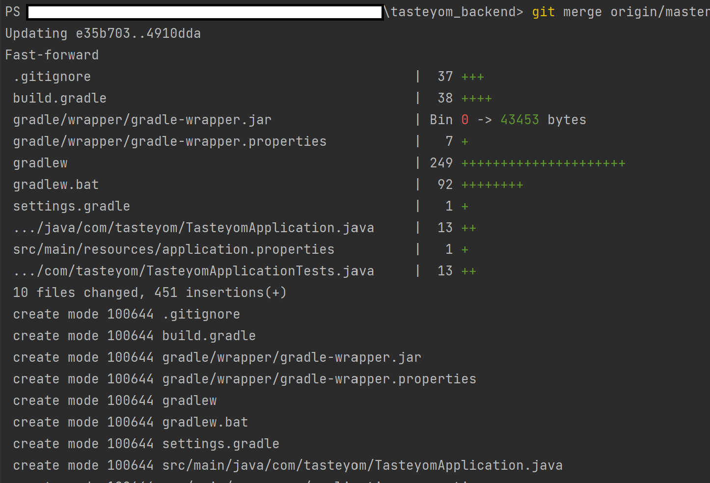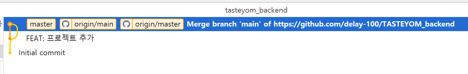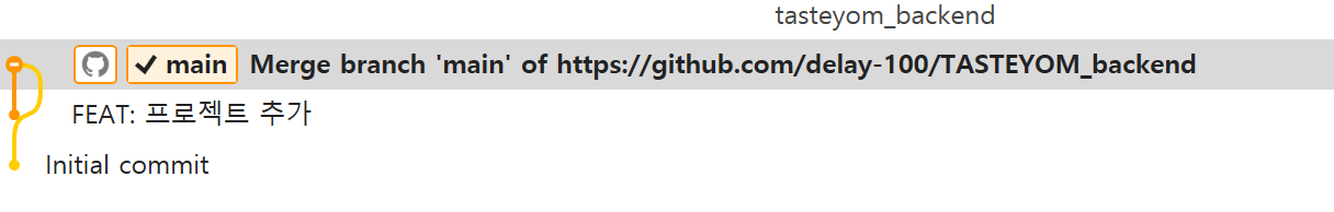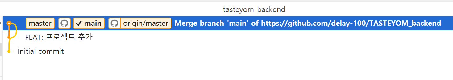 위에서 main과 병합하는 명령어(git pull origin main ~)를 실행했기 때문에