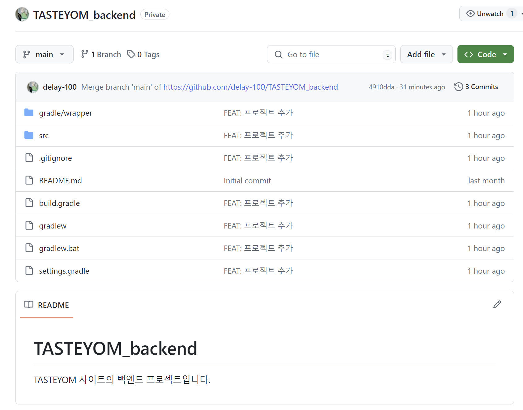 이제 README와 우리의 프로젝트 코드가 합쳐졌습니다.