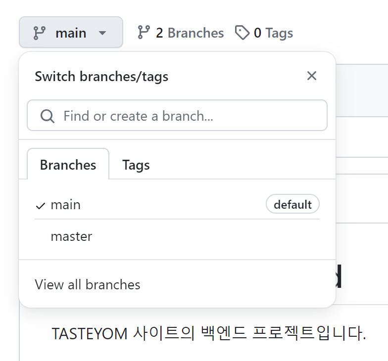 바로 main이 default 브랜치인데, master 브랜치에 병합이 되었기 때문이죠!