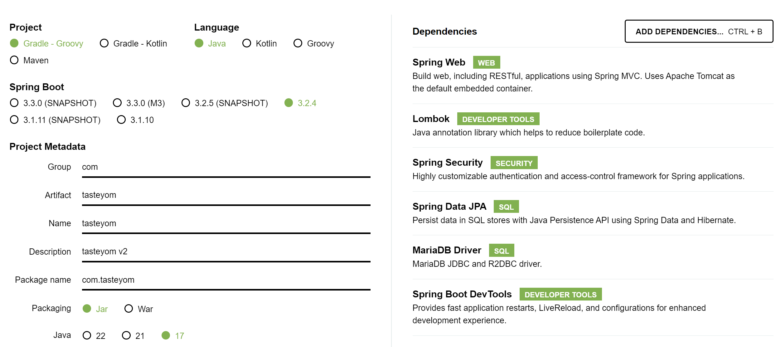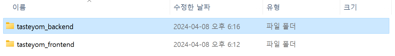 start.spring.io에서 만든 tasteyom_backend 폴더 내부 모습입니다.