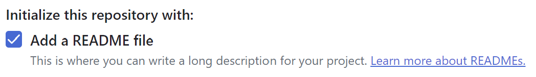 특히 옵션 중에서 Add README file을 체크해주었습니다.