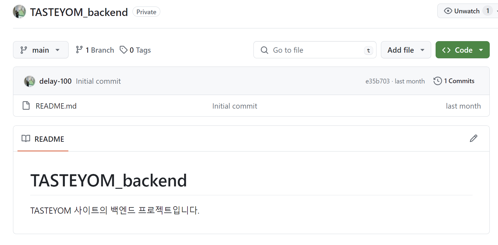 다 만들어주면 위와 같이 repository가 생성됩니다.