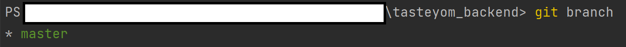 그리고 git branch 명령어로 현재 branch 를 확인합니다. 그대로 따라하셨다면 master 브랜치가 떠있을겁니다.