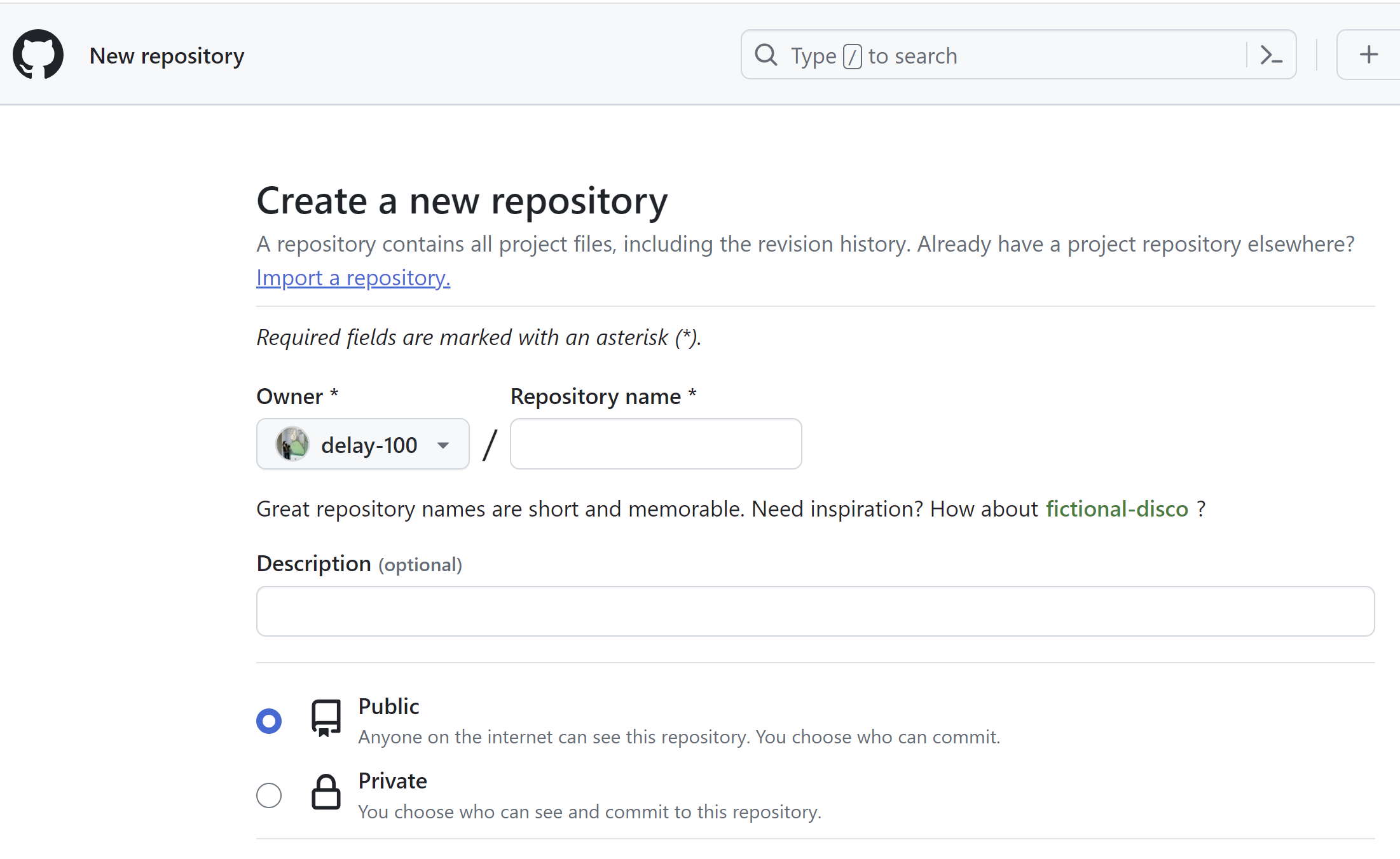 먼저, Github에서 새로운 레포지토리를 생성해주었습니다.
