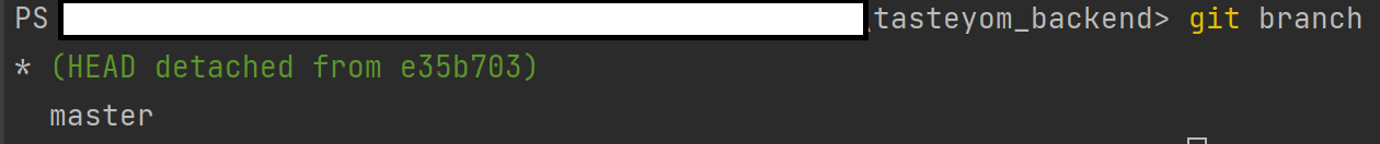 하지만 우리는 HEAD로 이동되었습니다. (뜨는 문구를 보니 git switch를 이용해 브랜치를 이동했어야했을 것 같네요..)