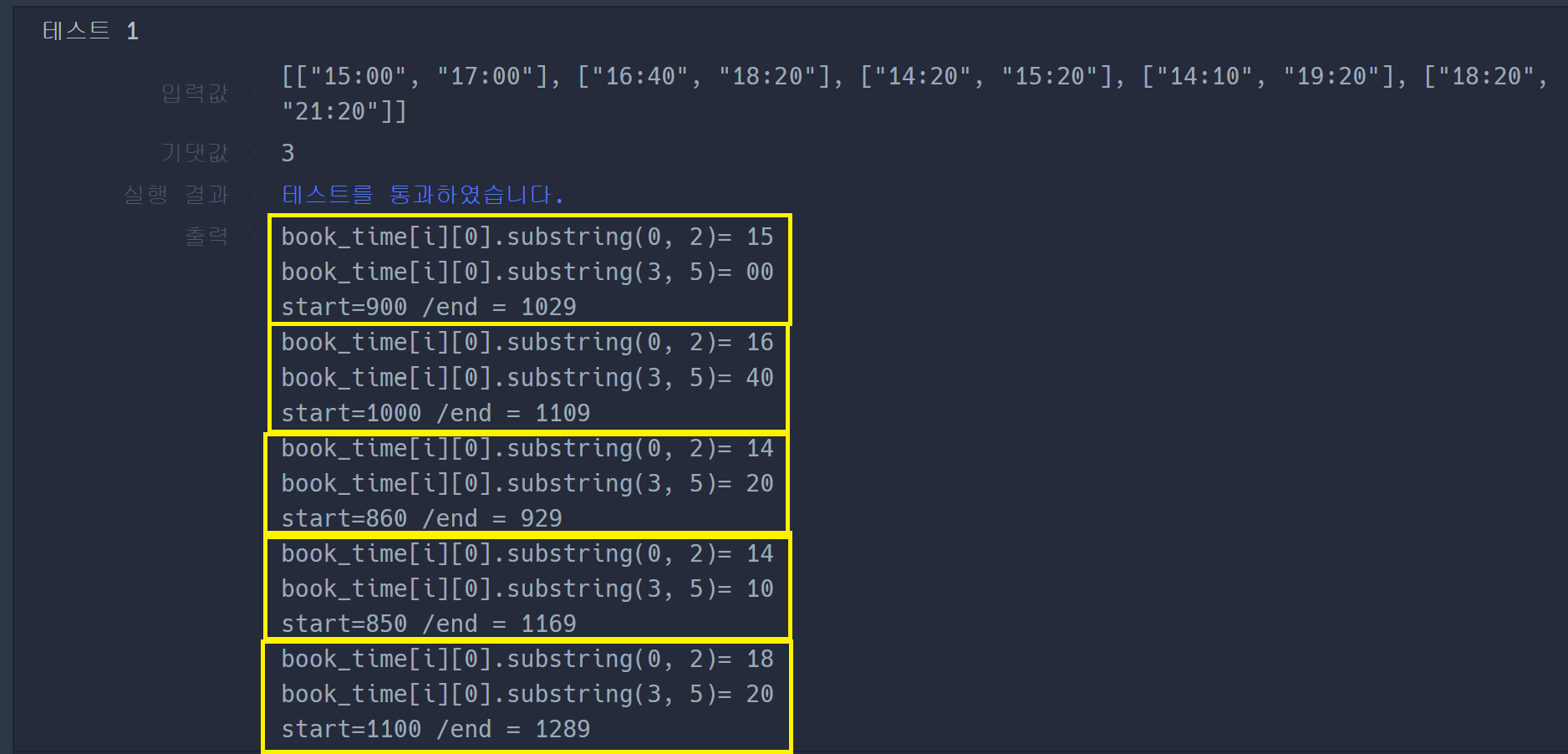 int start = Integer.parseInt(book_time[i][0].substring(0, 2))*60 + Integer.parseInt(book_time[i][0].substring(3, 5));
