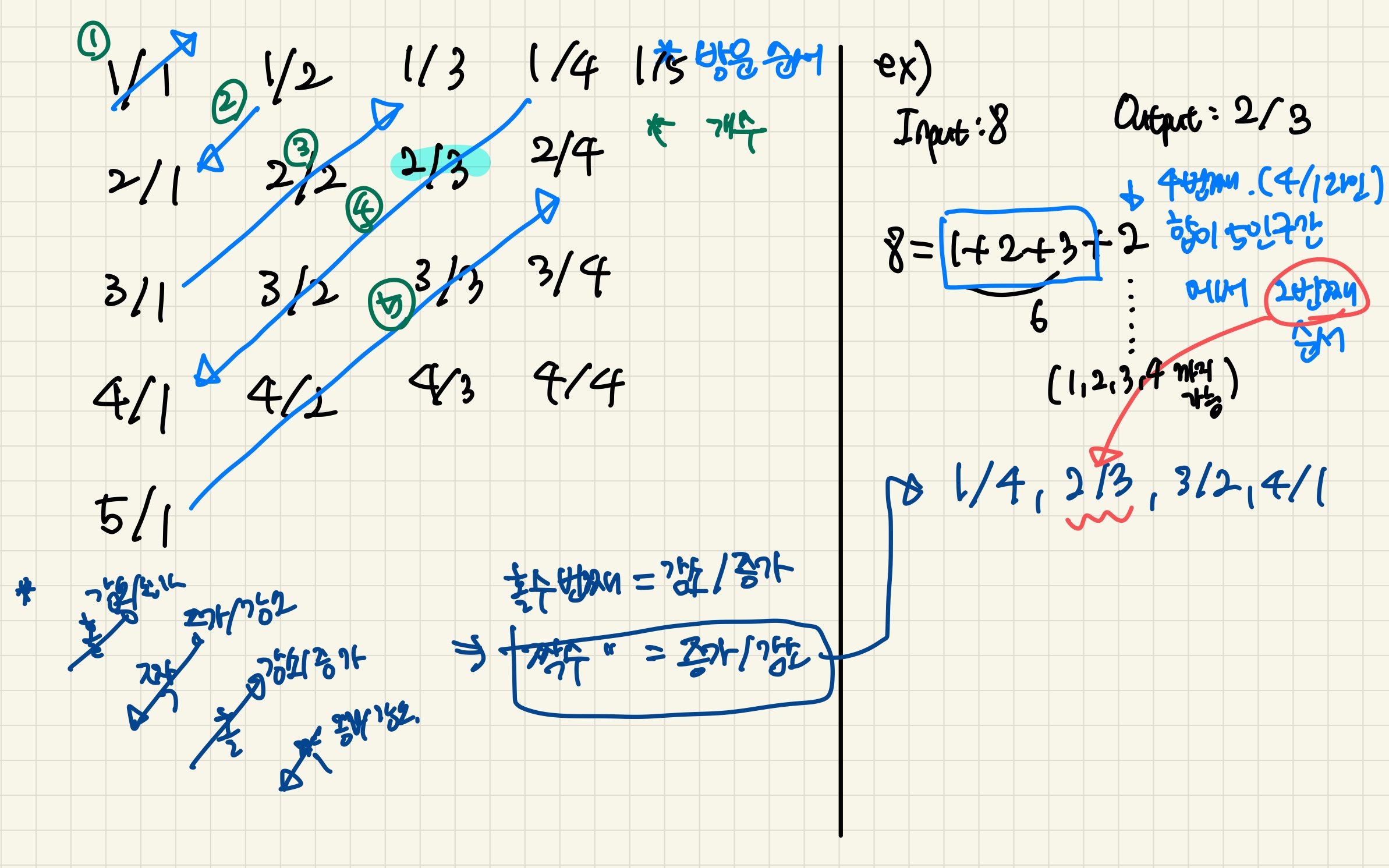풀이 이해를 쉽게 하기 위해 Input을 8이라 가정, Output인 2/3을 찾아야하는 경우를 알아보겠습니다.