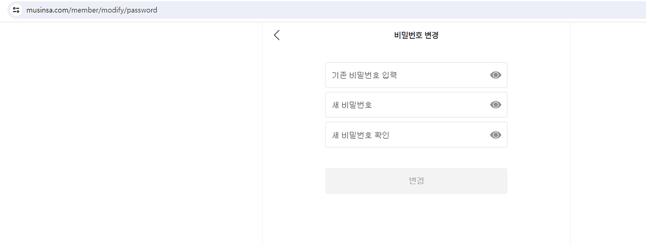 무신사(Musinsa)의 비밀번호 변경 페이지를 참고했습니다.
