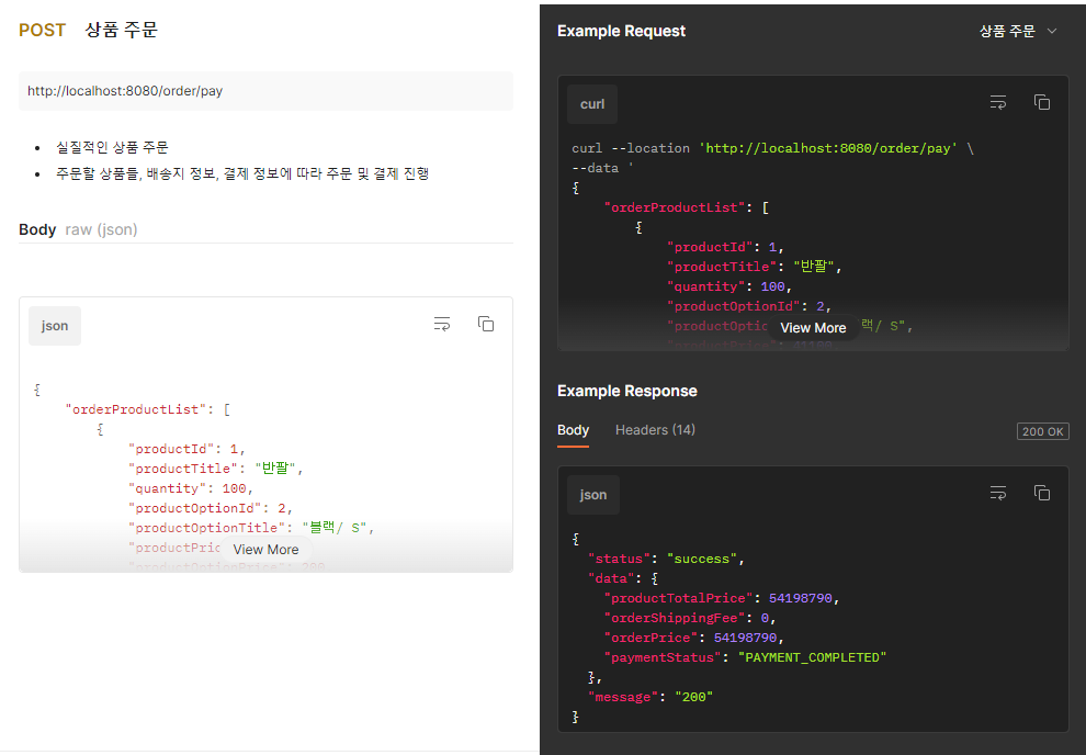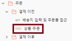 RequestBody로 위의 JSON 정보를 받아와서 서버에서 주문DB에 레코드를 생성하면 될 것이라 생각했습니다.
