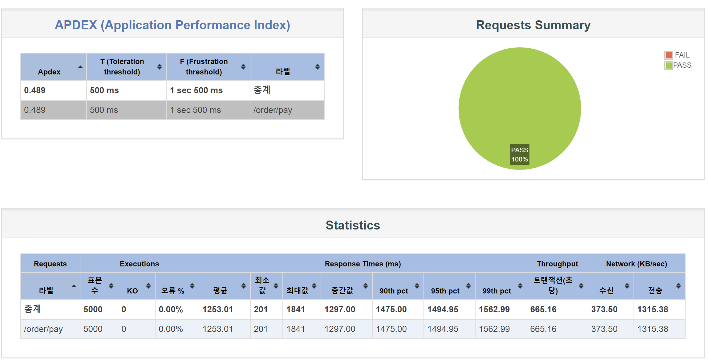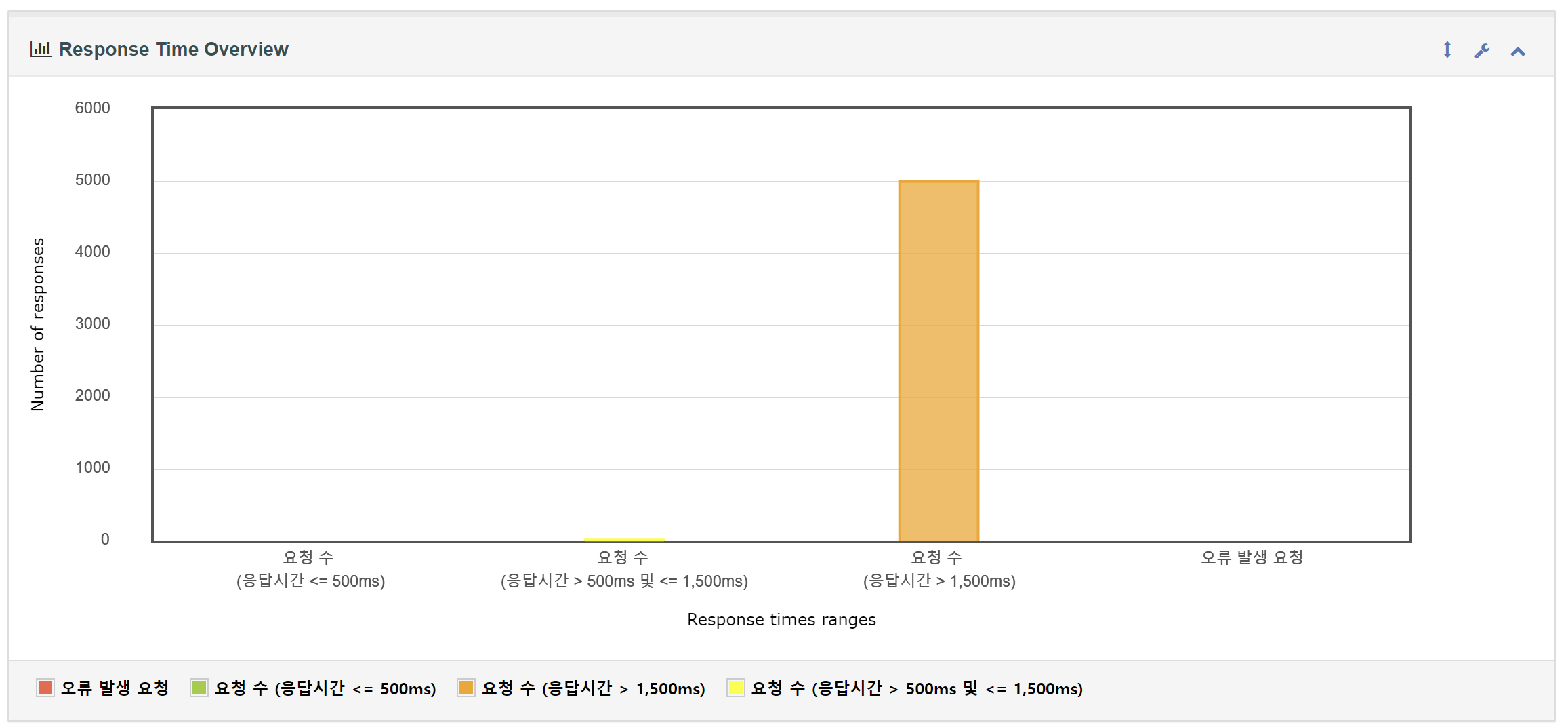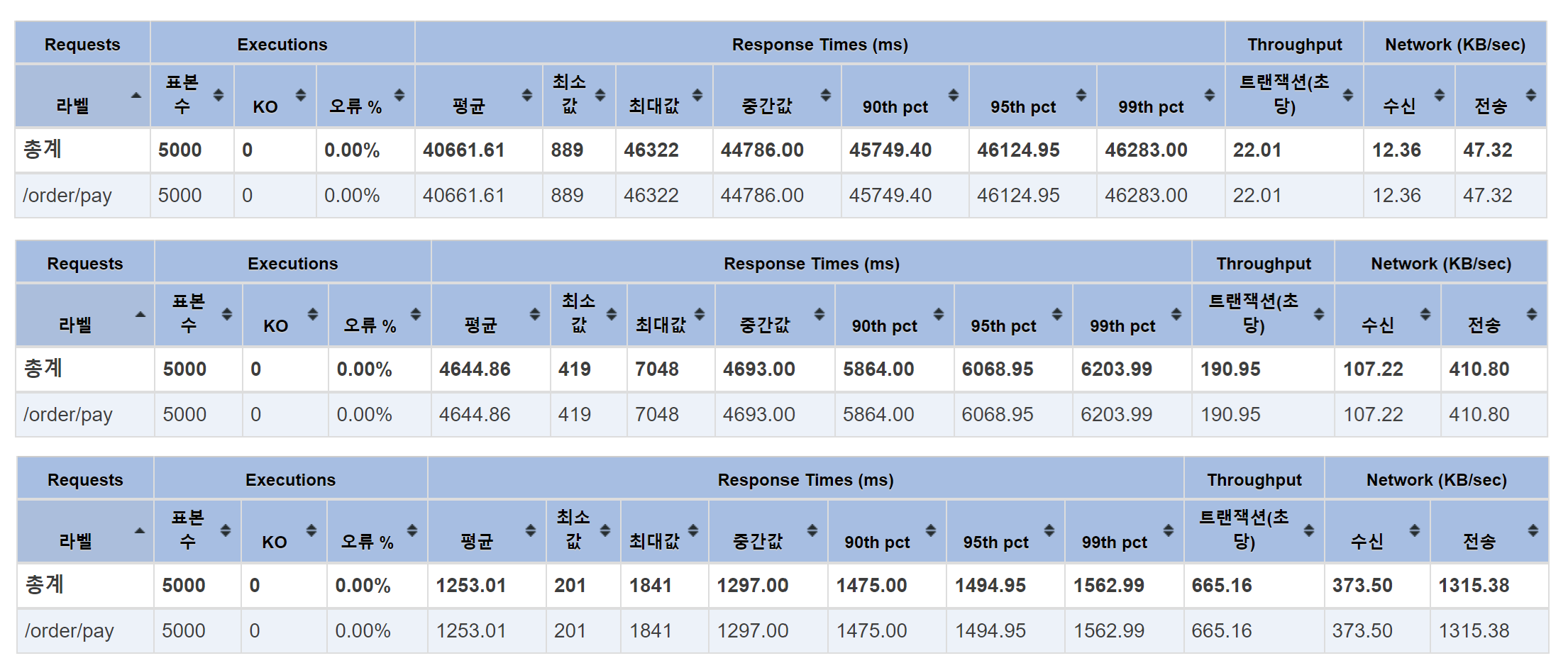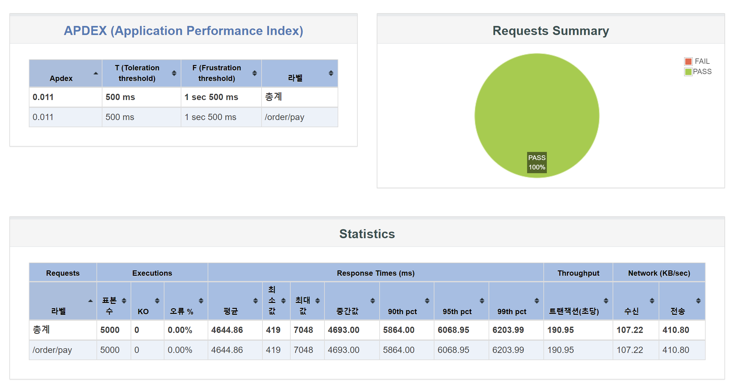 5,000건의 주문에 대해 최종적으로 약 10초가 경과되었습니다.