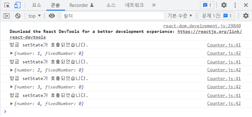 // setState를 사용해 값을 업데이트 한 후 특정 작업을 하고 싶은 경우 setState의 두 번째 파라미터로 콜백(callback) 함수를 등록하여 작업을 처리할 수 있음