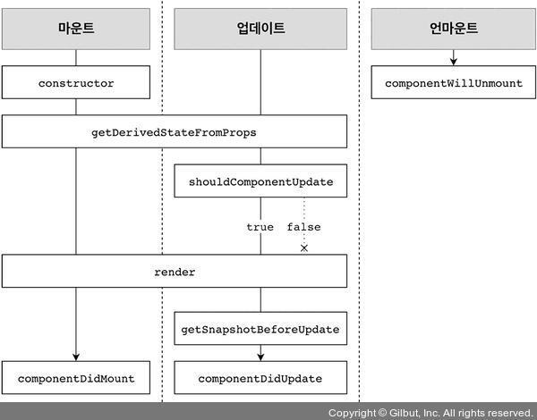// getDerivedStateFromProps 메서드 - props로 받아 온 값을 state에 동기화시키는 용도로 사용하며, 컴포넌트가 마운트될 때와 업데이트 될 때 호출됨