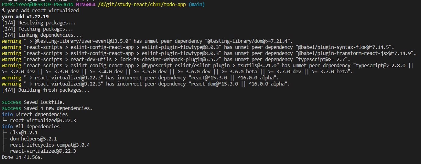 설치를 완료했으면 react-virtualized에서 제공하는 List 컴포넌트를 이용해 TodoList 컴포넌트의 성능을 최적화합시다.