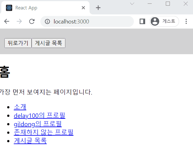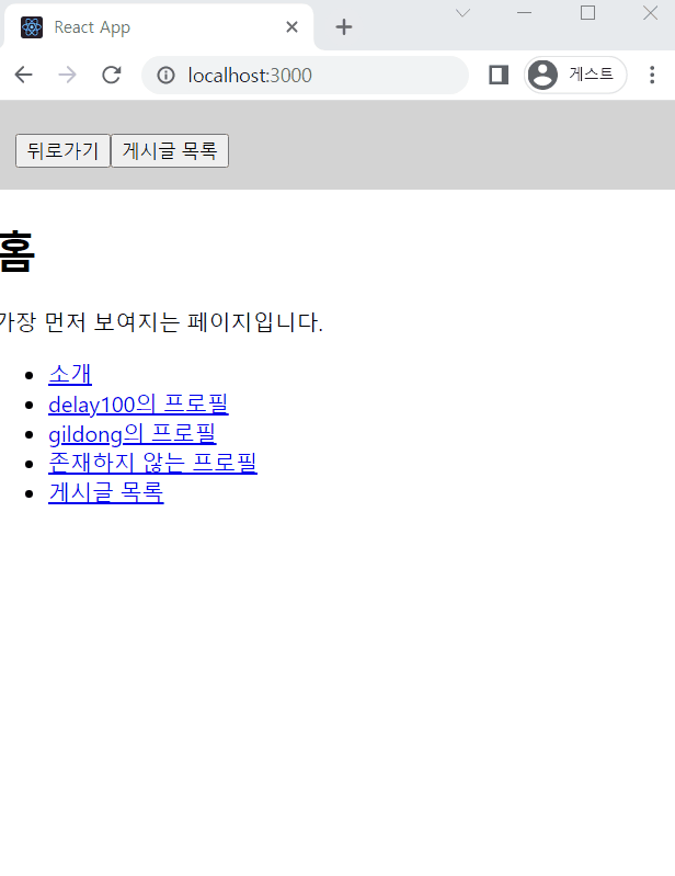 Home -> 소개-> 게시글 에서 뒤로가기를 한 번 누르면 소개페이지로 이동합니다.
