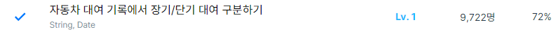 문제에 '장기 대여', '단기 대여'로 나와있으나, '장기대여', '단기대여'로 작성하여 계속 실패를 만났음.