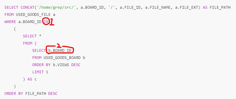 코딩테스트 연습 > String, Date > 조회수가 가장 많은 중고거래 게시판의 첨부파일 조회하기